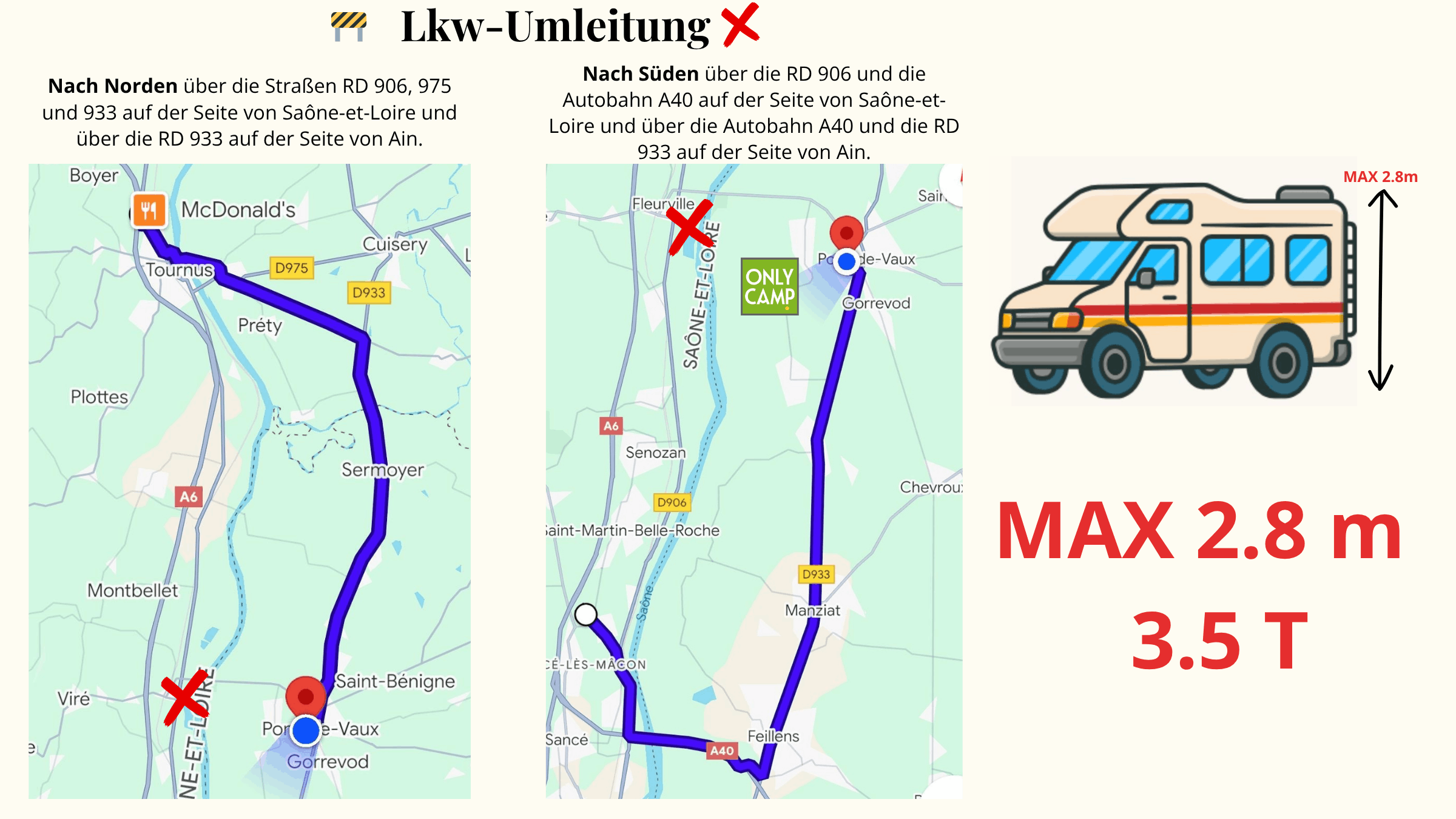Aufgrund von Straßenbauarbeiten ist die Zufahrt zum Campingplatz für Wohnmobile vorübergehend umgeleitet.